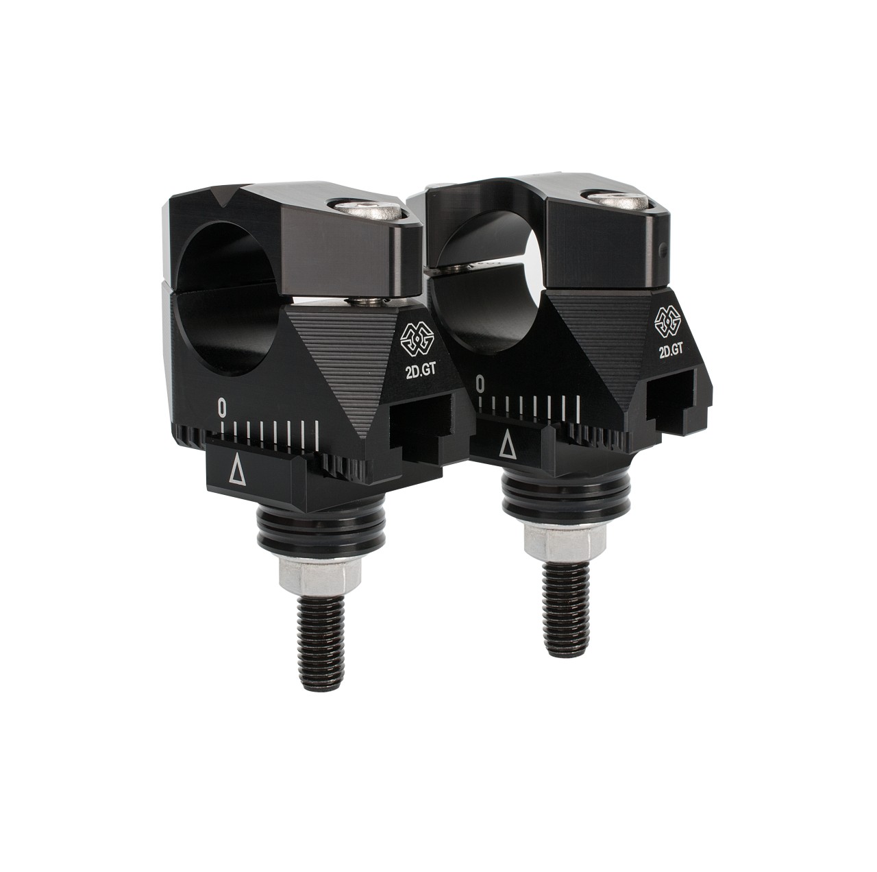 Die revolutionären 2DGT Klemmböcke helfen die perfekte Position des Rohrlenkers zu finden. Beweglich nach oben und unten sowie vorne und zurück erlauben diese Klemmböcke ungeahnte Einstellmöglichkeiten in Verbindung mit edler Optik.