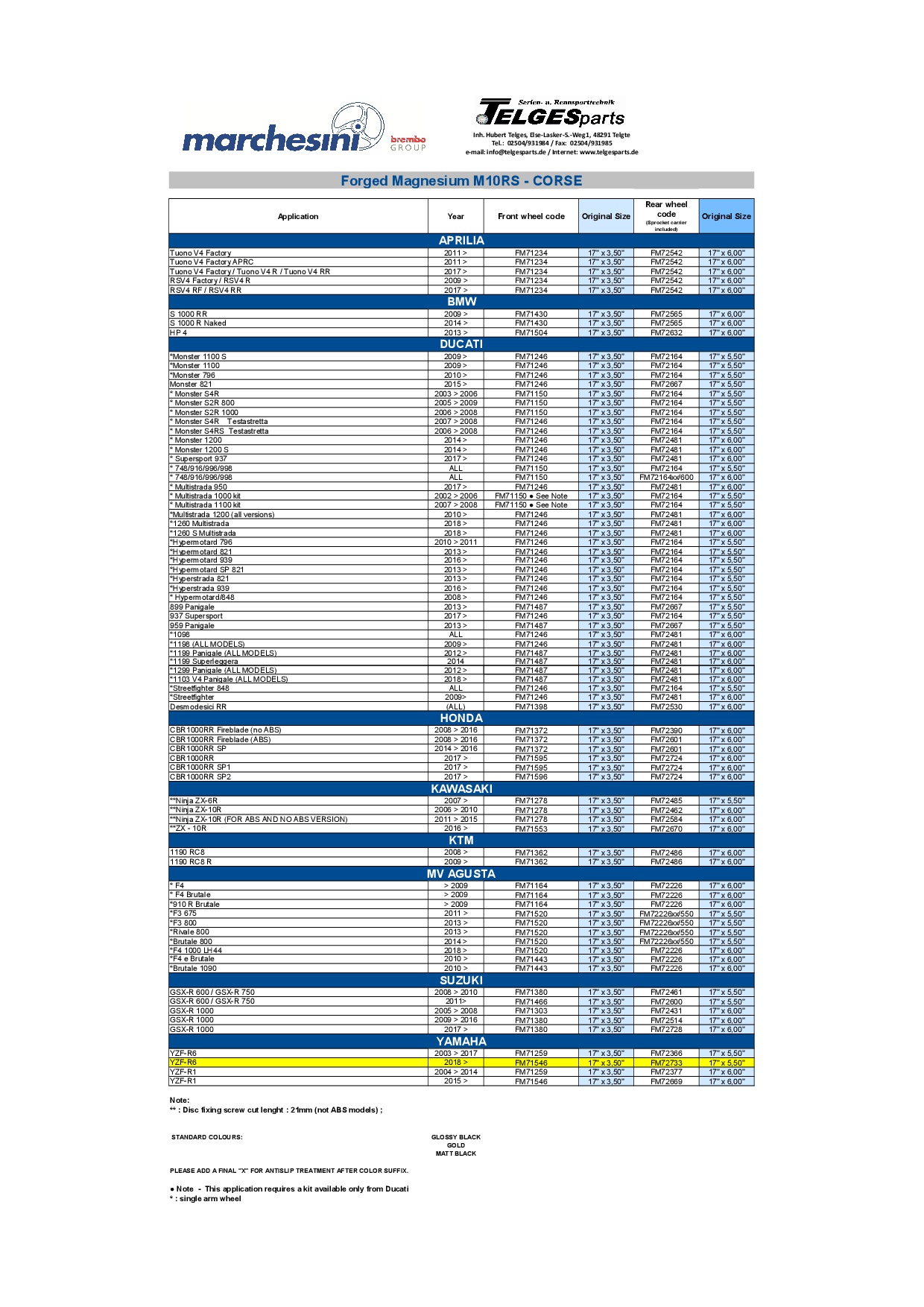 Marchesini M10RS-Corse, vorne und hinten, Magnesium. Lieferbar zur Zeit für viele Superbikes und Supersportler mit Dualschwinge (bei Bestellung bitte genaues Modell angeben / siehe auch Verwendungsliste).