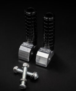 Die CNC-gefertigten Fußrastenadapter aus Al7075 (Flugzeugaluminium) bieten höchste Stabilität bei geringem Gewicht. In Kombination mit den CNC-gedrehten Kunststoff-Fußrasten aus hochfestem Vollmaterial (kein 3D-Druck) entsteht eine extrem robuste, präzise und langlebige Baugruppe für den harten Rennstreckeneinsatz.