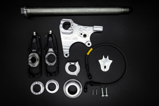 Die originale Steckachse wird nach einer Bearbeitung mit einem Außensechskant und einer Schale auf der linken Seite sowie einer Zentrierung auf der rechten Seite ausgestattet, so ist ein einfaches Lösen und Ansetzen von Hand oder einem geeigneten Schlagschrauber möglich. Diese Bauteile dienen zusätzlich als Sturzpads.